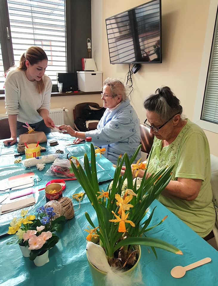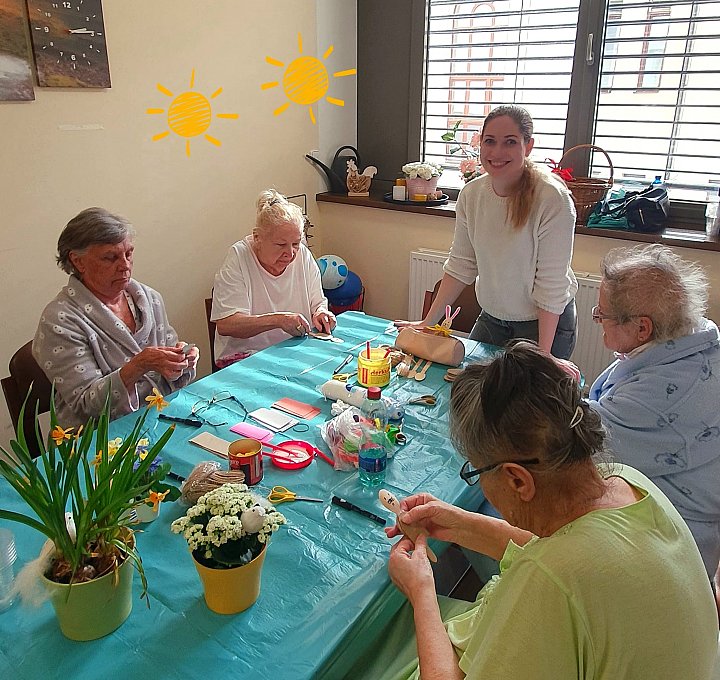 Dnešní hezké odpoledne při atreterapii, klientky si vyrobily veselou jarní výzdobu.